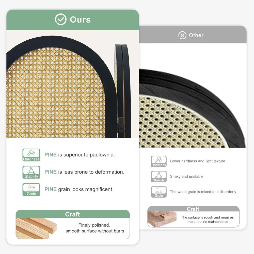 - High quality material: The frame is made of PINE wood rather than the common paulownia wood found on the market. Pine is typically more durable, has a higher density, and is less likely to suffer damage and wear. In addition, pine usually features a more attractive grain pattern, enhancing the aesthetic appeal. The minimalist style of pine wood and rattan, along with the perfect color combination, brings more warmth and naturalness to your room
